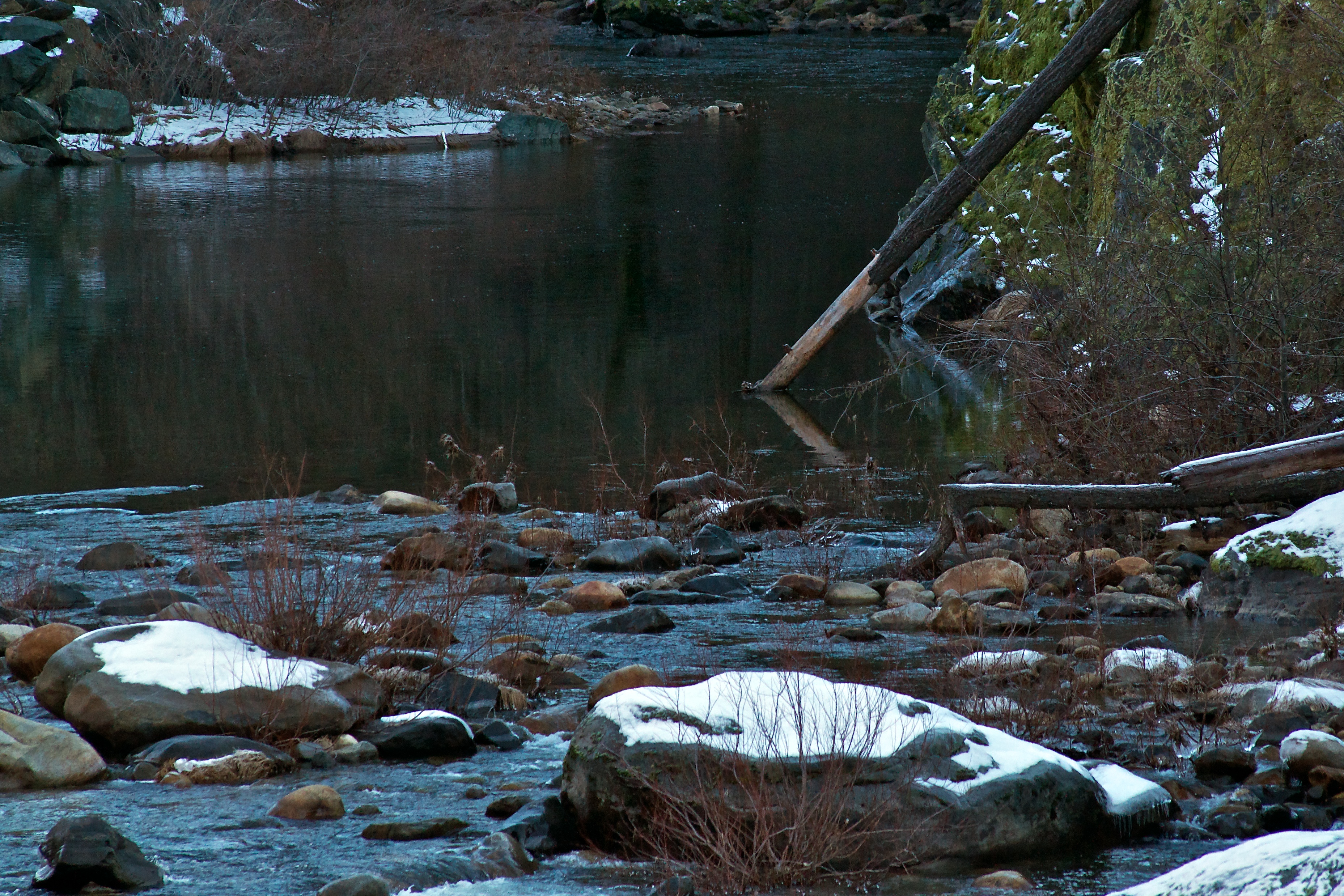 My husband agreed to stop so I could get a shot of the snowy rocks in the river.