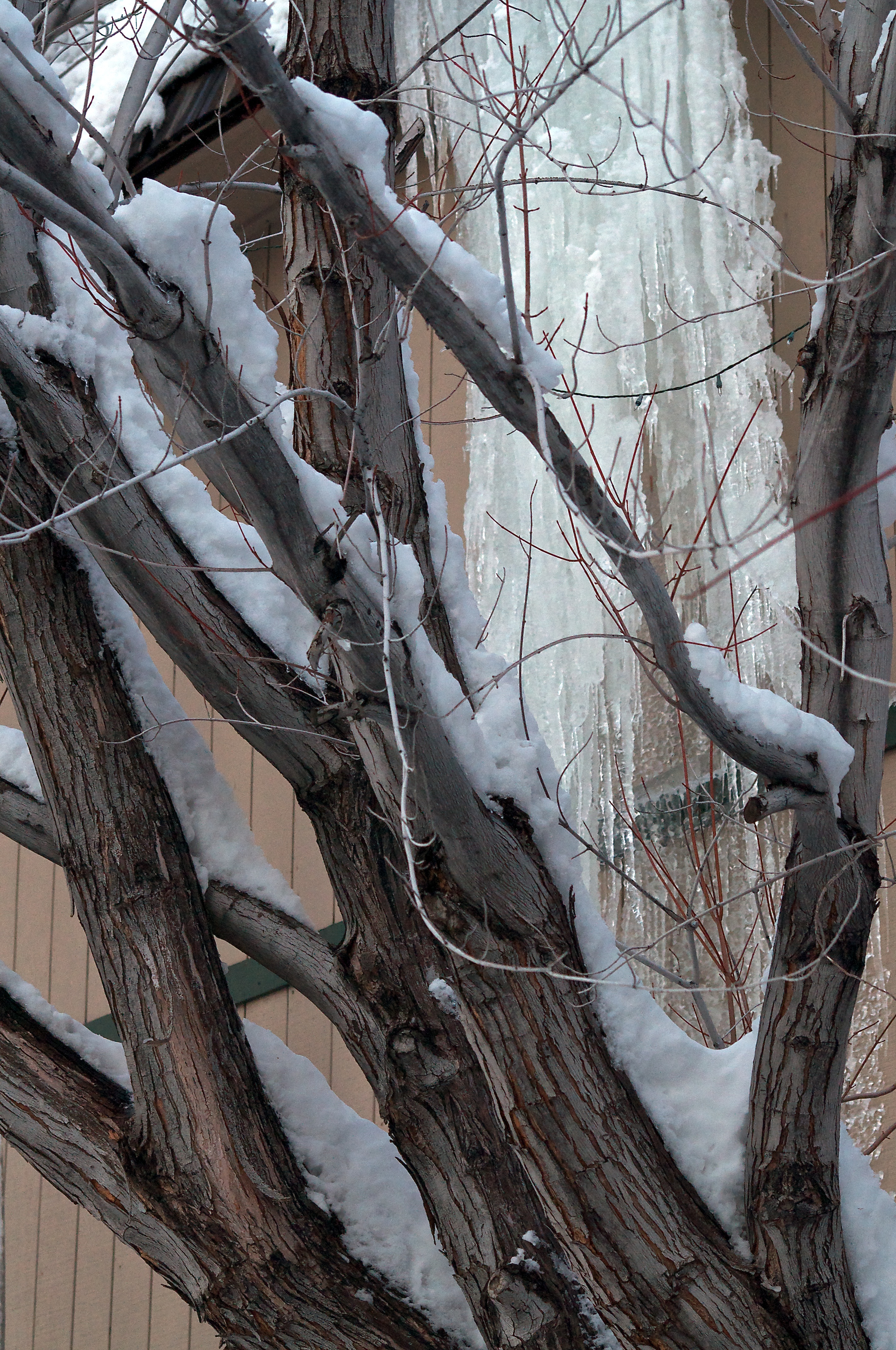 Very, very nice! I love the texture in the bark contrasting with the snow and icicles. Can’t wait to see what snowy wonders you have tomorrow.