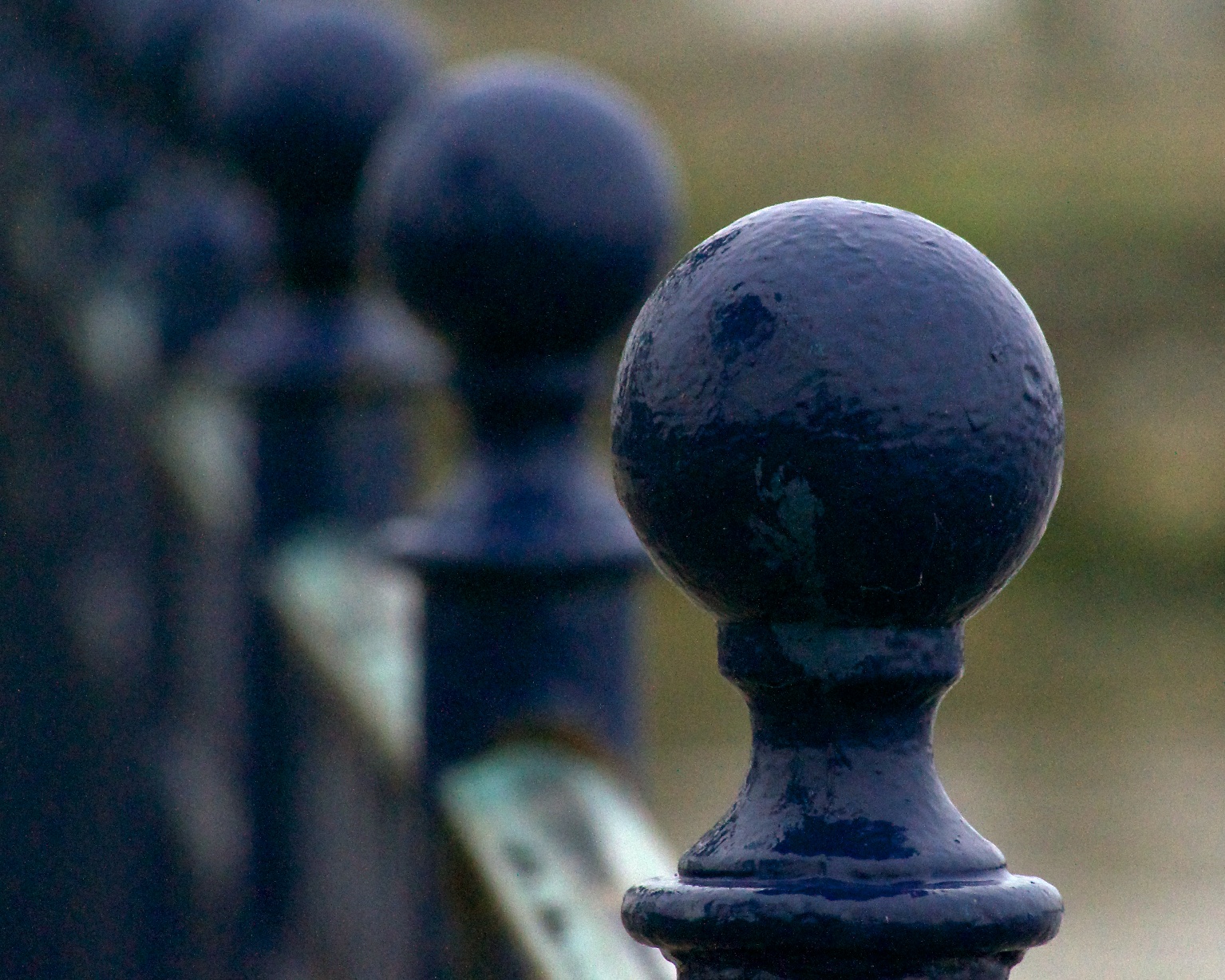 It is so (insert your own expletive…) cold and foggy here today! After going to the gym, I drove down to the water hoping to catch a view of the bridge shrouded mysteriously in fog- you couldn’t even SEE the bridge! When I got home, I opened the fridge to get milk for my cereal and discovered the milk’s date had passed- YUCK! So I went to the grocery store and drove BACK down to the water just on the off chance a great photo op was waiting for me. Well, there were seagulls, so I got some pretty ordinary seagull shots. I have been experimenting with back button focus (at least I THINK that’s what I’m doing…), so I took a few shots of the railing near the water. I like this one.