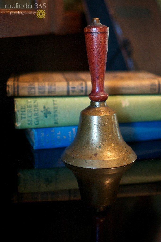 I stayed home most of today- so here is a still life featuring my grandmother’s school bell and some of my mother’s books (sitting on my father’s antique dental cabinet). I do love old things!