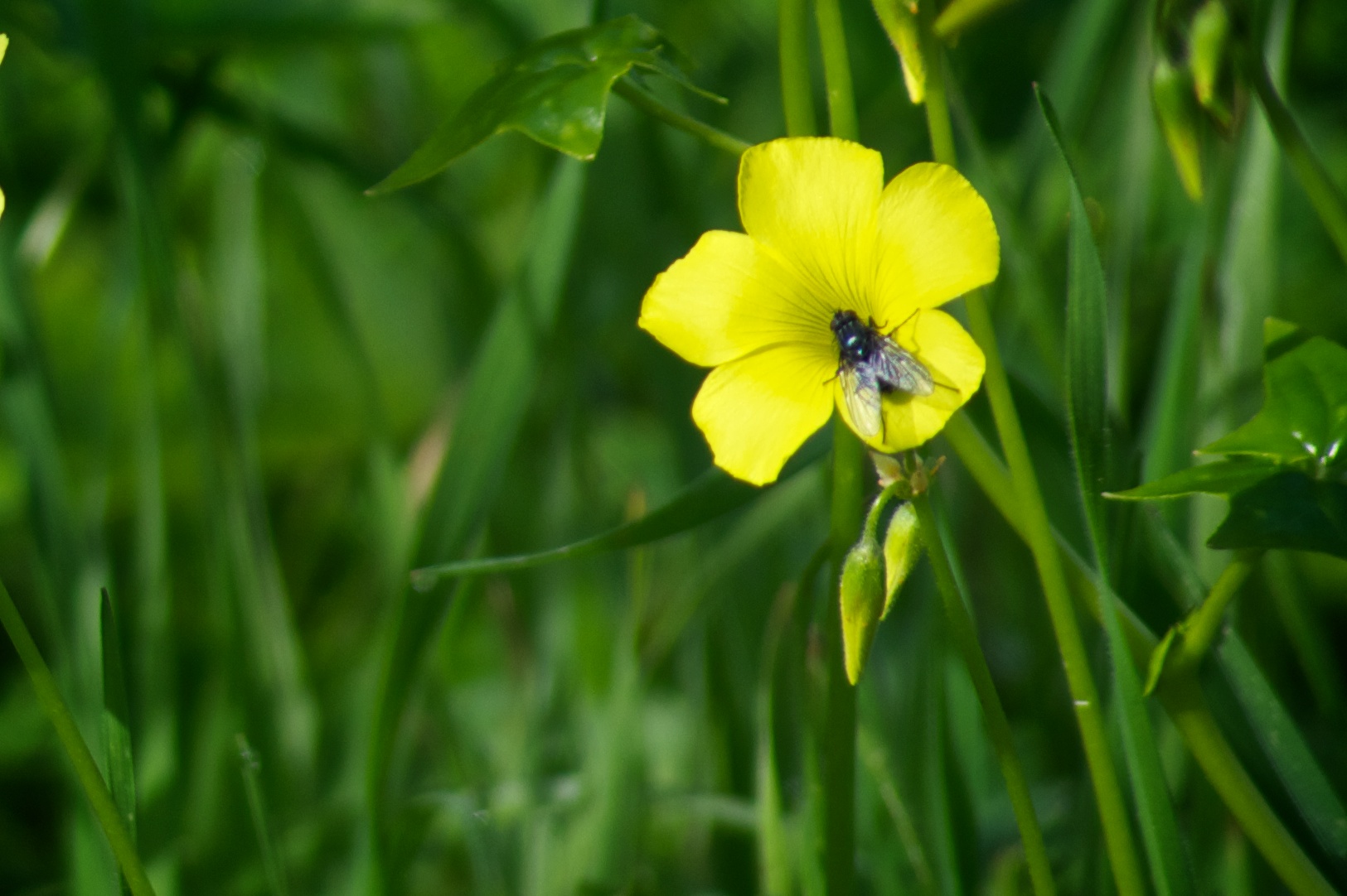 This is just a small cropped corner of a larger group of flowers (this was from last weekend- how come we all want to photograph bees, but not flies?). So obviously, we have a SITUATION, and, since I focus MANUALLY in macro, there just might possibly be some user error going on here . . .