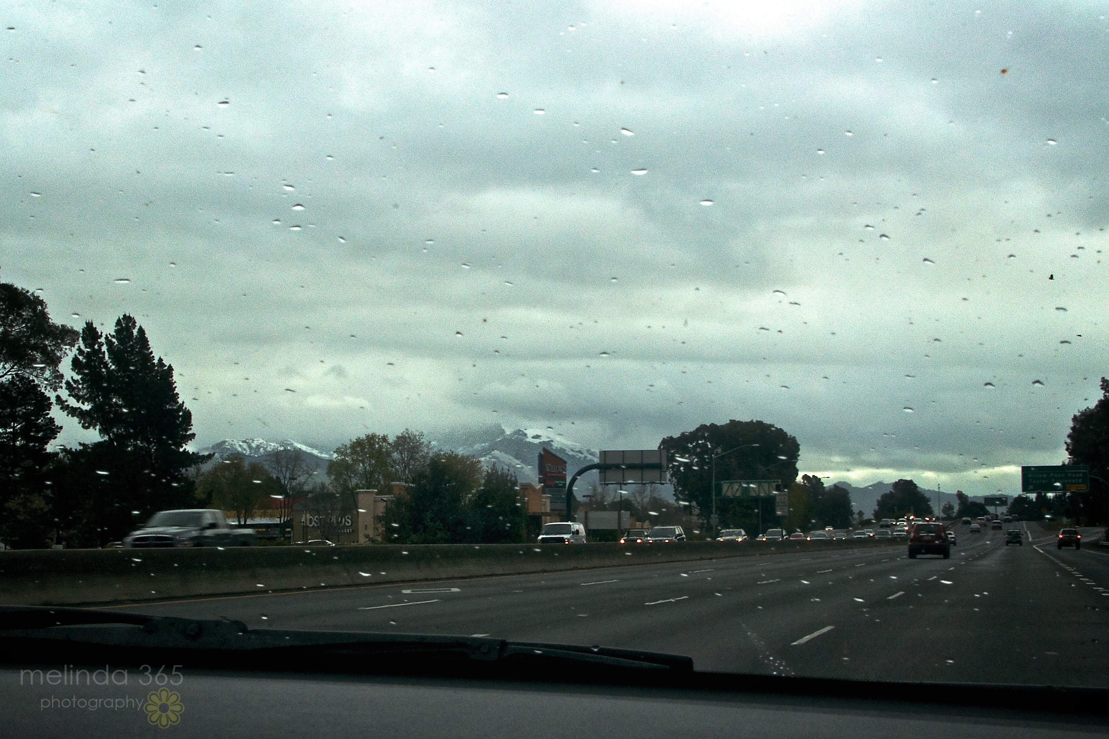 Good News: The glimpses through the rain and clouds of Mt. Diablo, topped with snow!