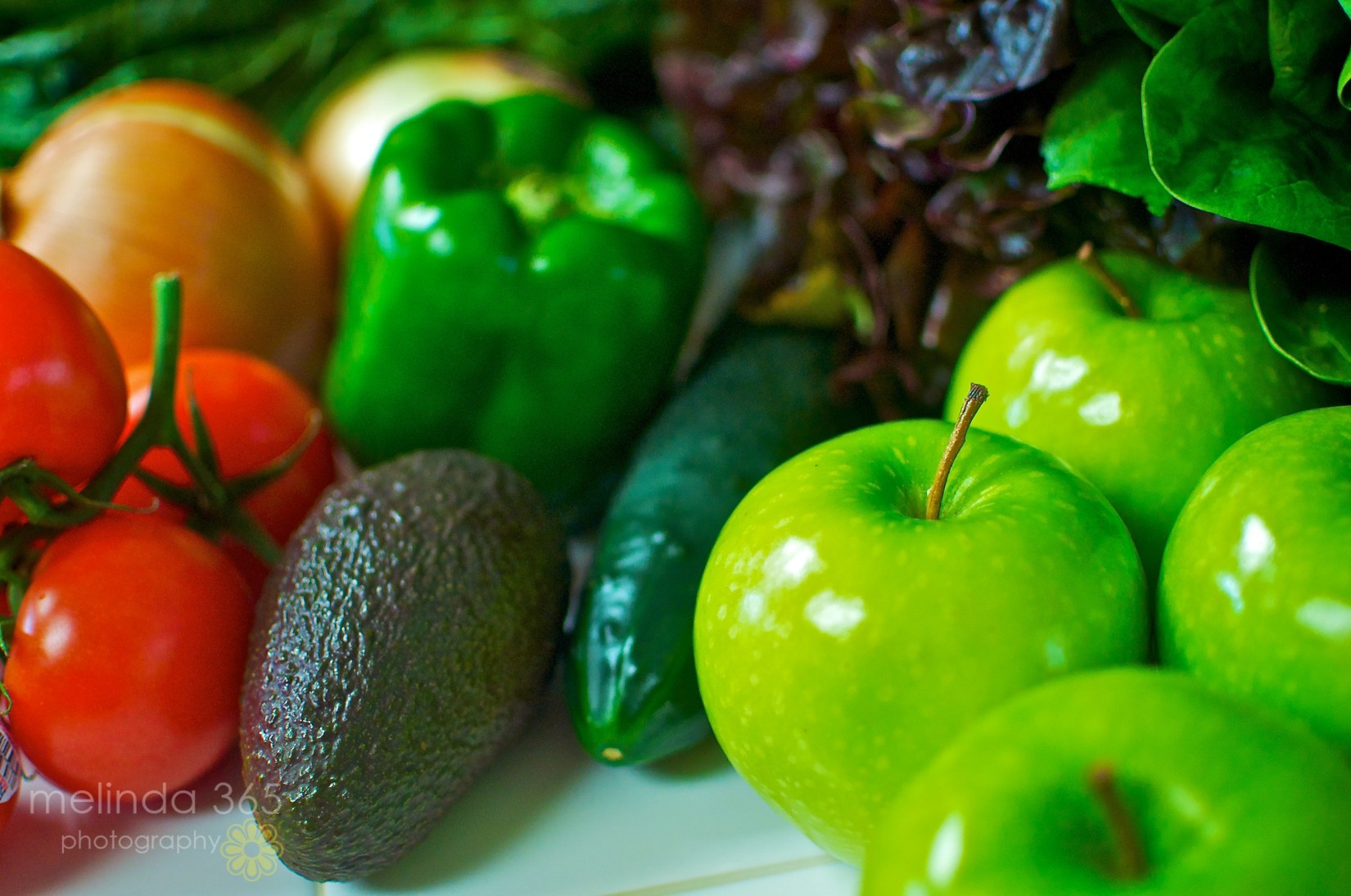 It certainlylooks very healthy! Nice depth of field and I love the reflections on the apples and tomatoes.