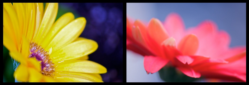 These are gorgeous and the purple bokeh is very nice. I love the angle of the shots. And don’t ever consider photographing flowers as being in a rut. I would take more myself, but don’t have any. I love Gerbera Daisies. They are so bright and cheerful. What a great gift to come home to! I told you Lonnie is a “keeper!”