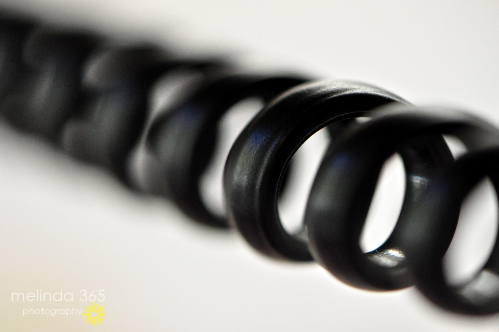 I was outside shooting some tiny flowers and tiny waterdrops when the phone rang. When I hung up, I discovered my macro photo of the day- the phone cord (yes, we still have a phone with one of those…)! Simple and, um, retro!