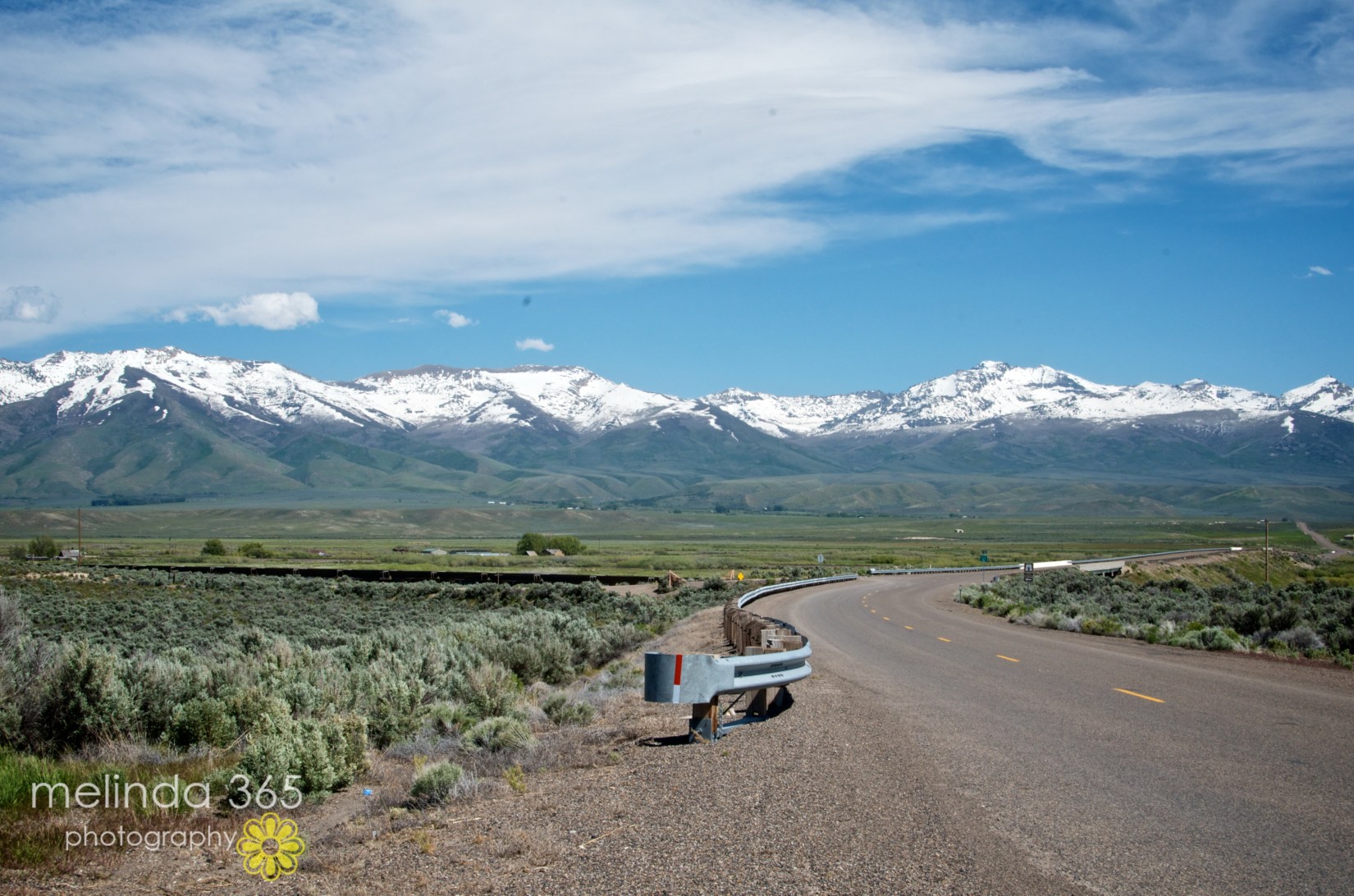 We are driving to Wyoming to visit the grandbabies! We got all the way to Twin Falls, ID today- and are slightly pooped.  We took a slight detour off Interstate 80, so that I could take my photo of the day. Here’s a scene of unexpectedly photoworthy mountains near Starr Valley on the way to Wells, Nevada.  The black streak is a train going by.