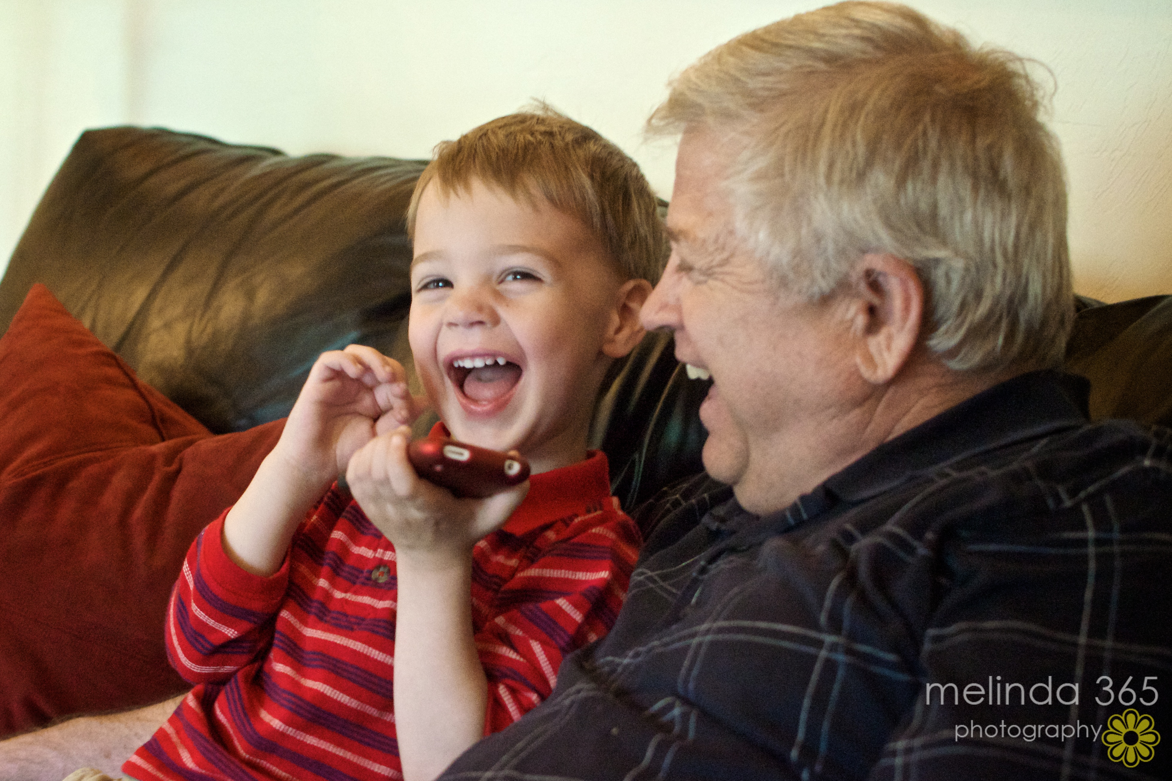 Here are Papa and Miles sharing a laugh over Tom Cat on my iPhone!