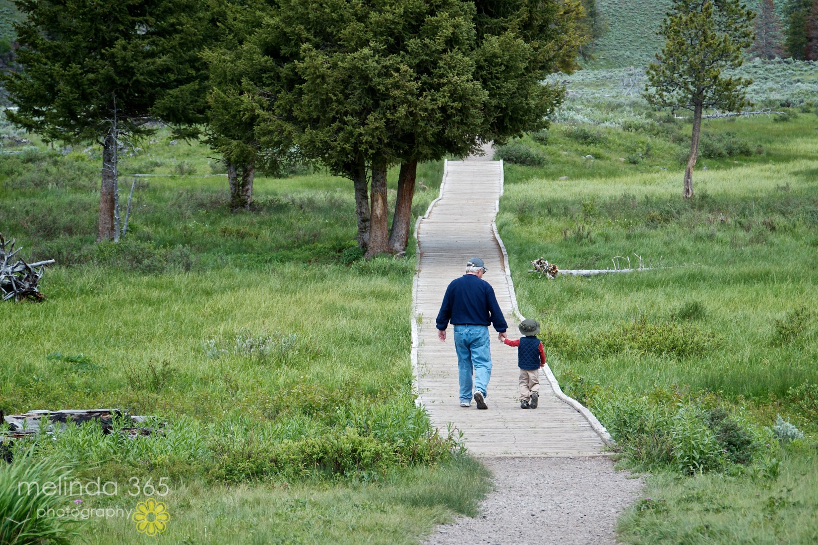 It’s our last day at Yellowstone- tomorrow we start the long drive home.  Papa has become Miles’s hands-down favorite person, so here is a photo, taken during a short hike we took to Wraith Falls, that commemorates their special times together.