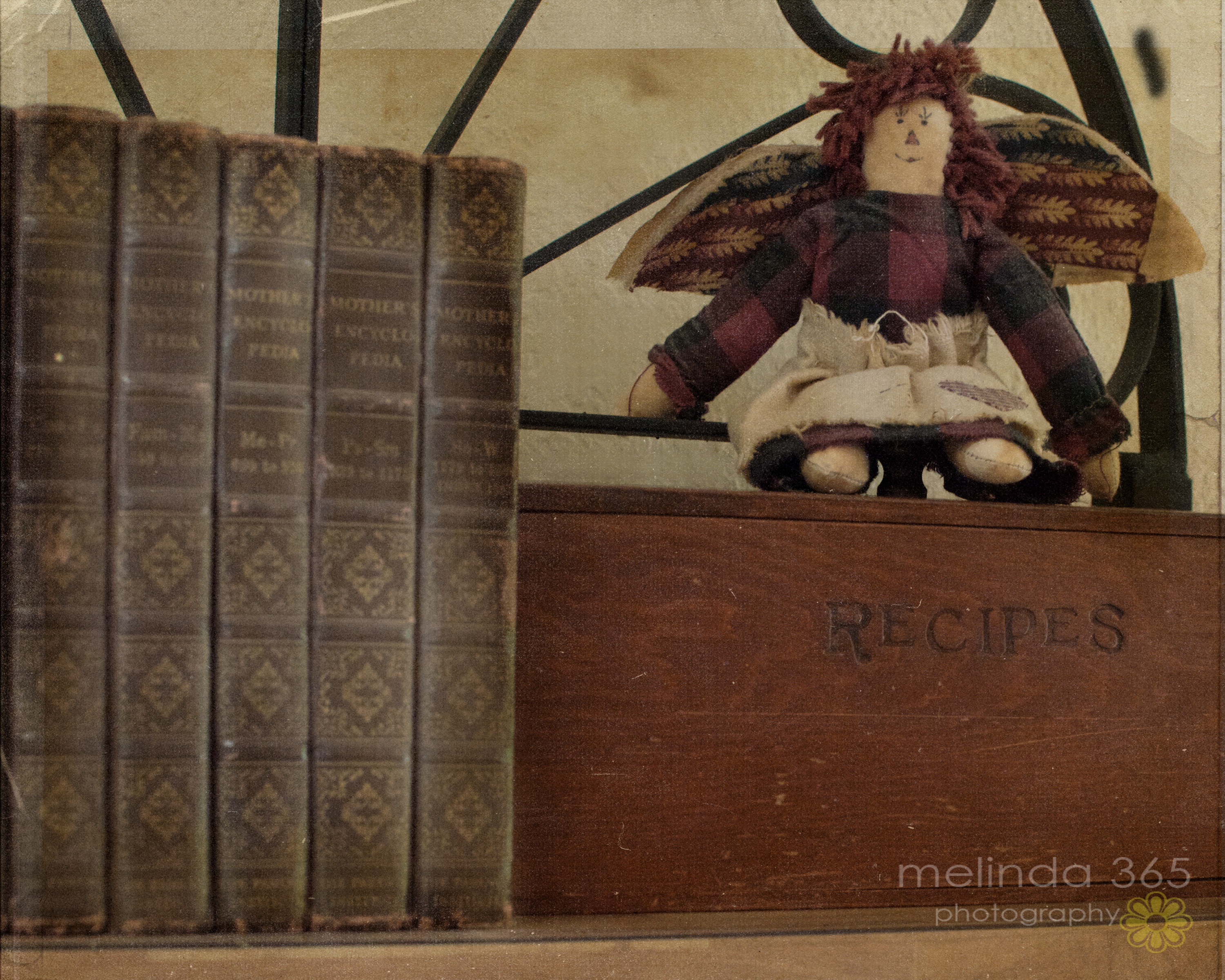 When my children were small, I read books by Dr. Brazelton and Rudolph Dreikurs instead of the Mother’s Encyclopedia, but the little set of books has remained in my kitchen all these years. Today, I photographed them and used some of the techniques I have been learning in Kim Klassen’s Photoshop Essentials class to edit the photo (including the textures canvasback magic, not too shabby, and frame it). I experimented with using curves on just part of the image, decreasing saturation on a selection, and, of course, textures and layer masks.