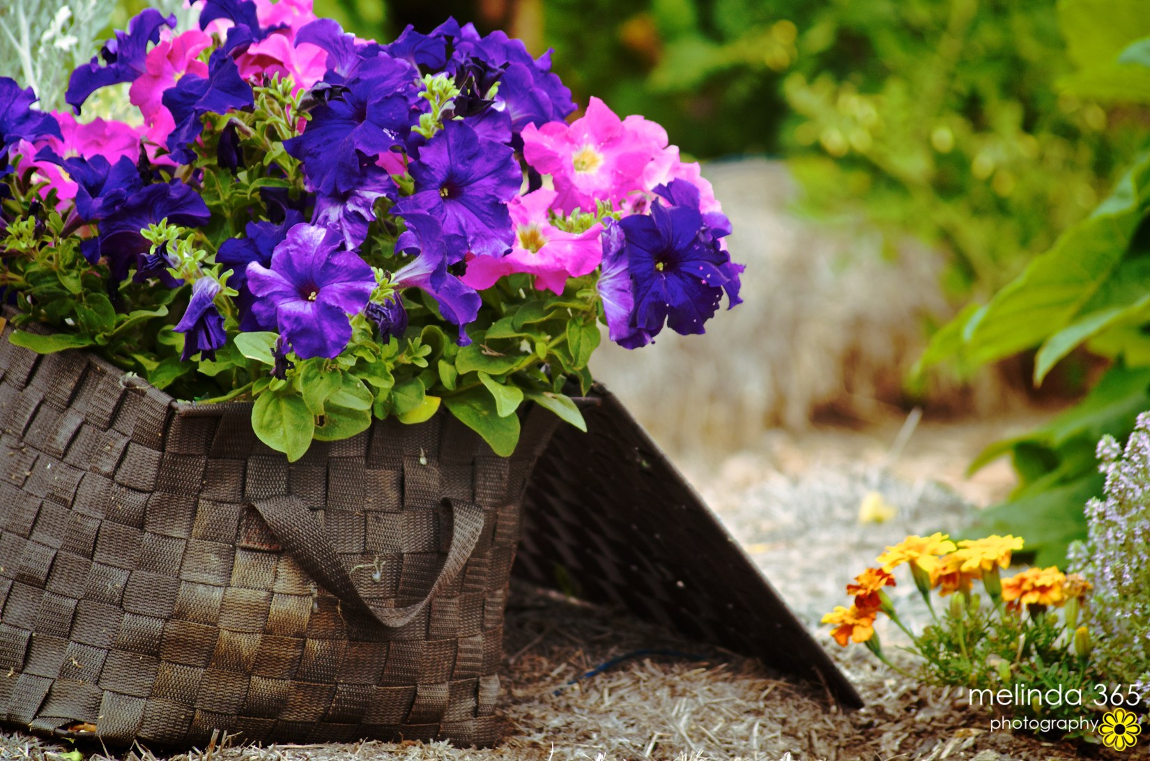 Day 197- Community Garden Posted on July 16, 2011 by Melinda We were out and about early today- heading over to Starbucks after saying good-bye to Matt. A drive by the Community Garden yielded this shot of a basket of petunias in among the veggies. f/4.5, 1/125, ISO 640, 170mm Share this: Click to email a link to a friend (Opens in new window) Email Click to share on Facebook (Opens in new window) Facebook Click to share on X (Opens in new window) X Click to share on Pinterest (Opens in new window) Pinterest Related