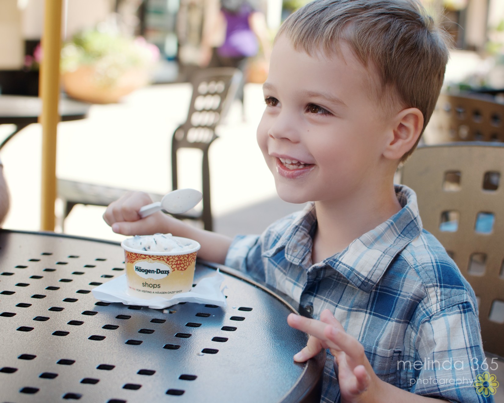 We had a special outing today- to the Build-a Bear Workshop where Miles chose a lop-eared bunny, not a bear, to build.  Mommy and Henry were out shopping, and we met them later for ice cream, where I snapped this photo.