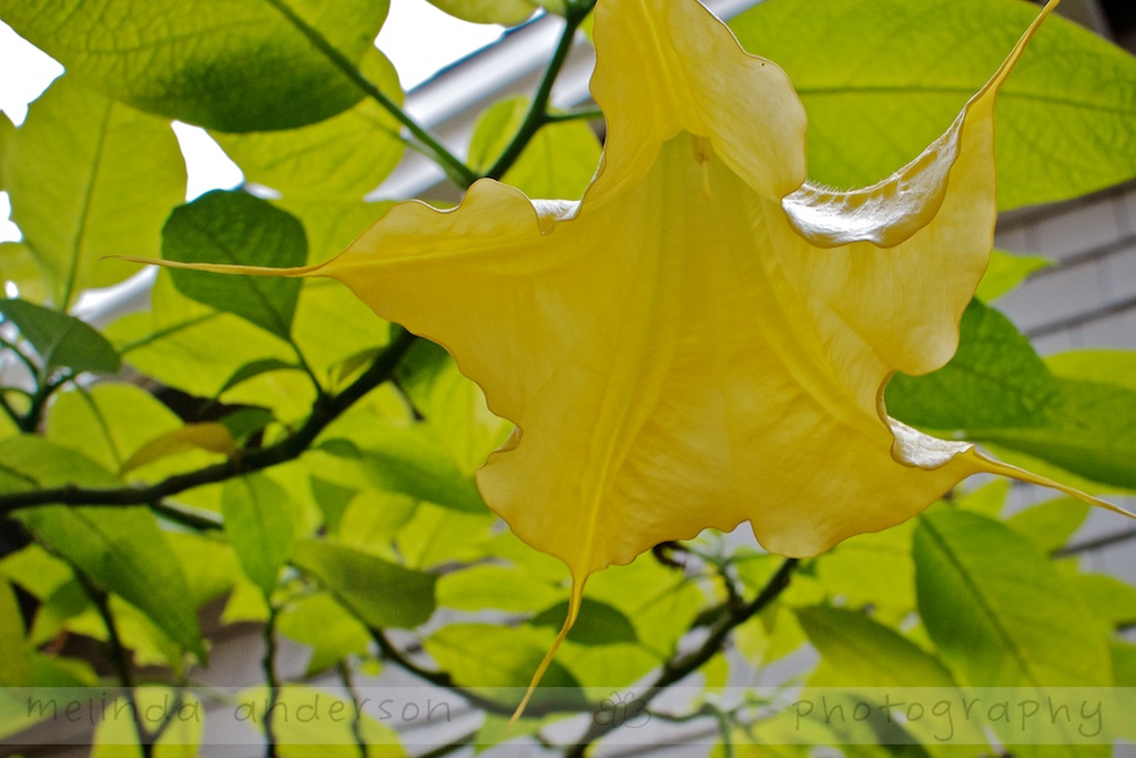 Quite delicate and lovely. I love the back lighting. Thanks to Sunset Western Garden Book, I was able to identify this flower as Angel’s Trumpet (brugmansia).