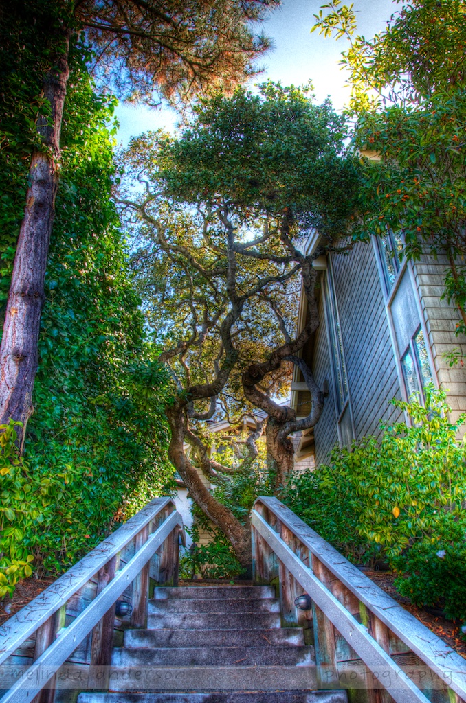 We arrived home from Carmel less than an hour ago, and I am already having fun editing my photos. This morning I wandered around town while my husband was at his meeting, and I had fun taking bracketed shots for HDR (as well as endless flower photos- it is so beautiful there!).