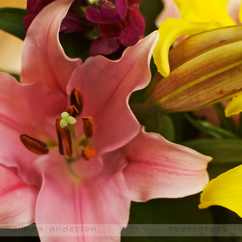 My husband likes to bring home flowers- especially now that he has discovered how reasonably priced you can find them at Trader Joe’s. When he handed me this bouquet, he told me it was for me to photograph for the blog.