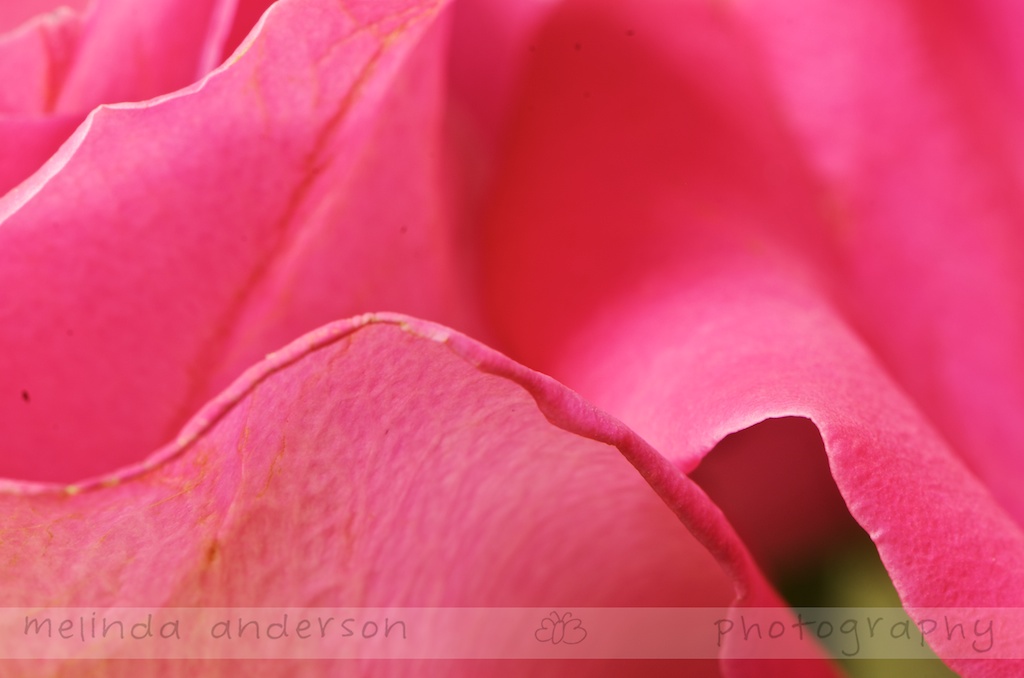I decided to use my flowers as photography subjects again today and became entranced with the curves and lines in a single rose. I moved closer and closer, eventually changing to a macro lens and getting out my tripod. I’m not sure this image says “ROSE,” but I like the color, curving lines, and composition.
