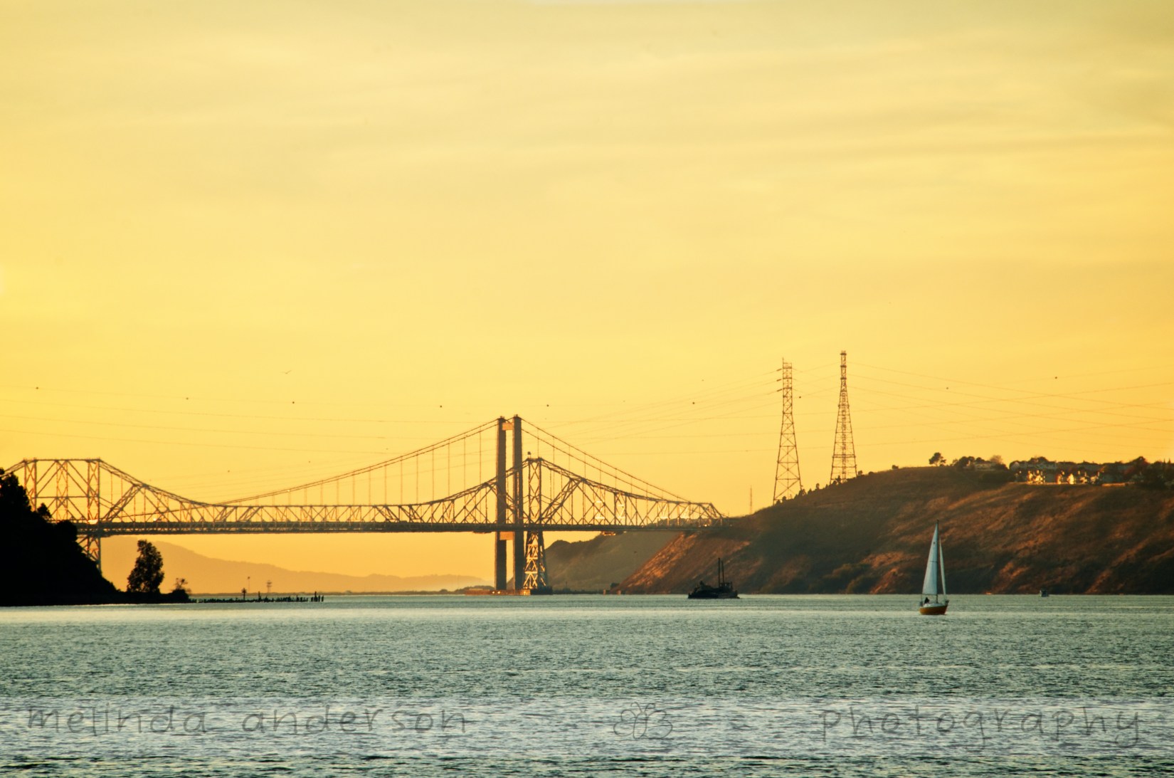 Day 320- Bridge at Sunset Posted on November 16, 2011 by Melinda I know this is a bit of a cliche, but I never get tired of this view at sunset. I have photographed the bridge many times- so here we are again in the golden hour. Share this: Email a link to a friend (Opens in new window) Email Share on Facebook (Opens in new window) Facebook Share on X (Opens in new window) X Share on Pinterest (Opens in new window) Pinterest Related