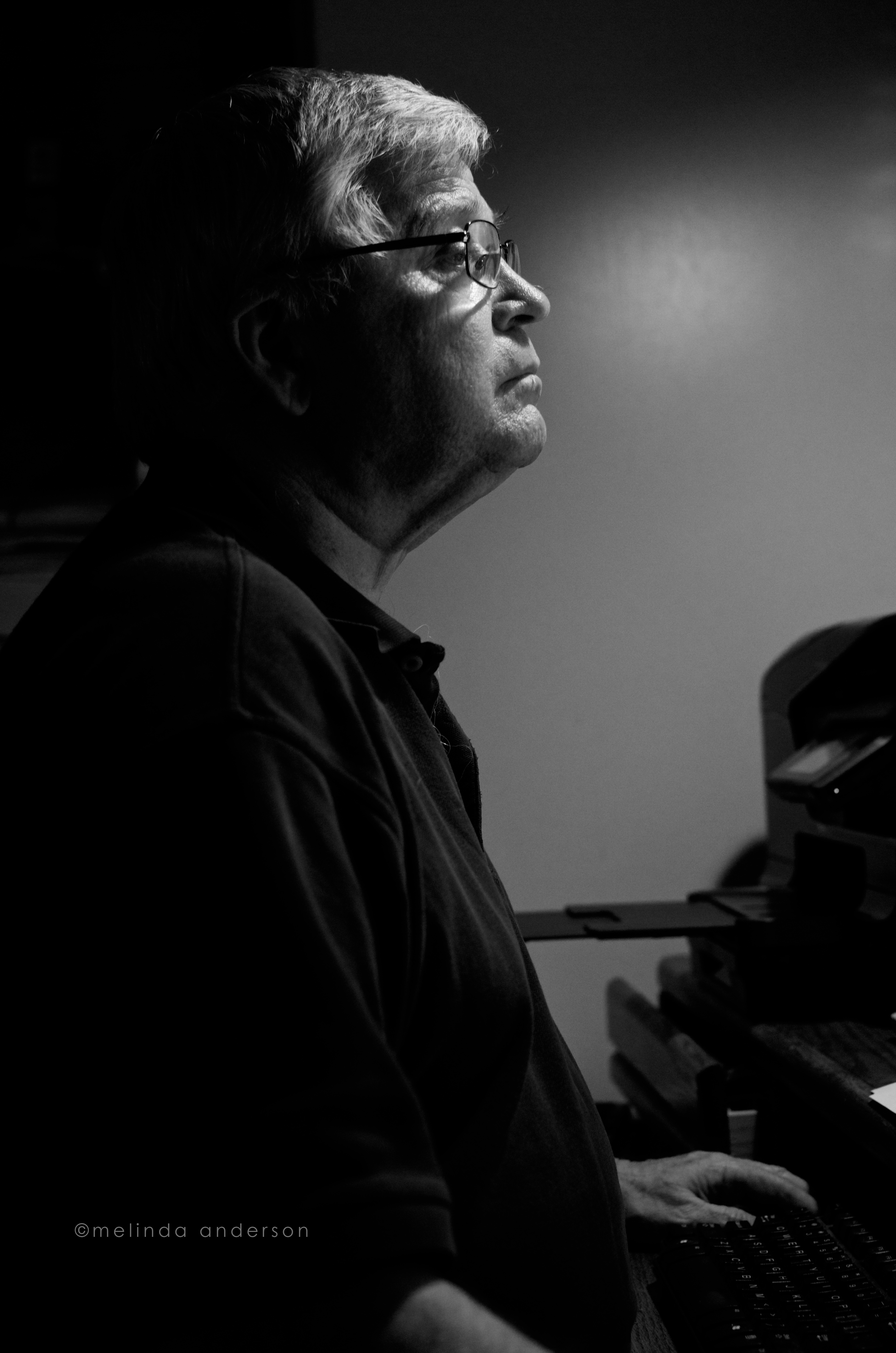 Breaking a rule- here is a photo I snapped of Lonnie hard at work at the computer last night, not today.  I am trying to capture more everyday moments in practice for seeing the grandbabies at some point in the future (I am missing them so much!).  And nothing could be more everyday than my husband hard at work.  I love the lighting from the computer monitor.