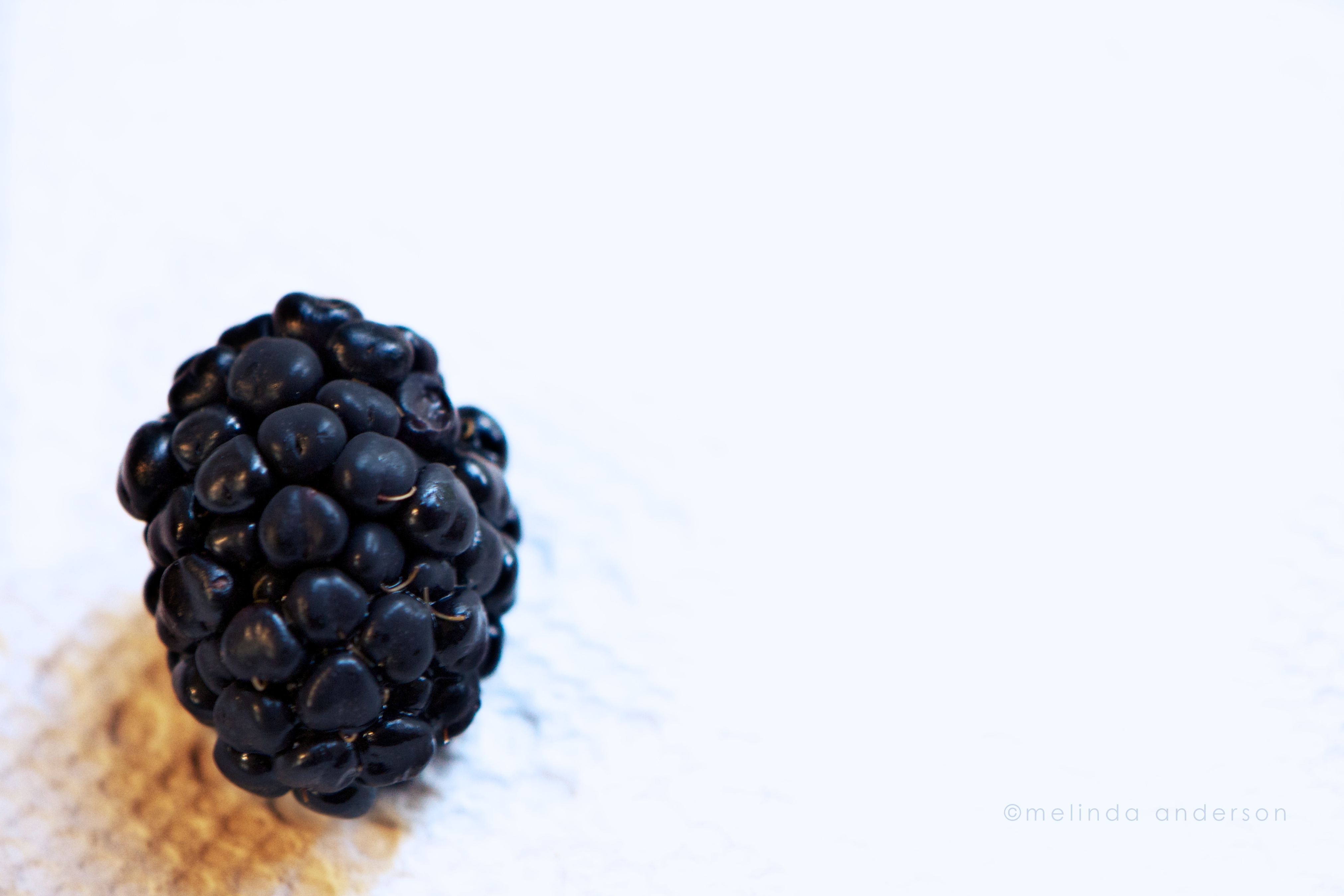 I submitted yesterday’s blackberry photo to my Flickr critique group for the topic, negative space. It was criticized for not having enough negative space, for the negative space being white, for not showing the whole berry, and for having a shallow depth of field (which was a deliberate choice I made for that image).
