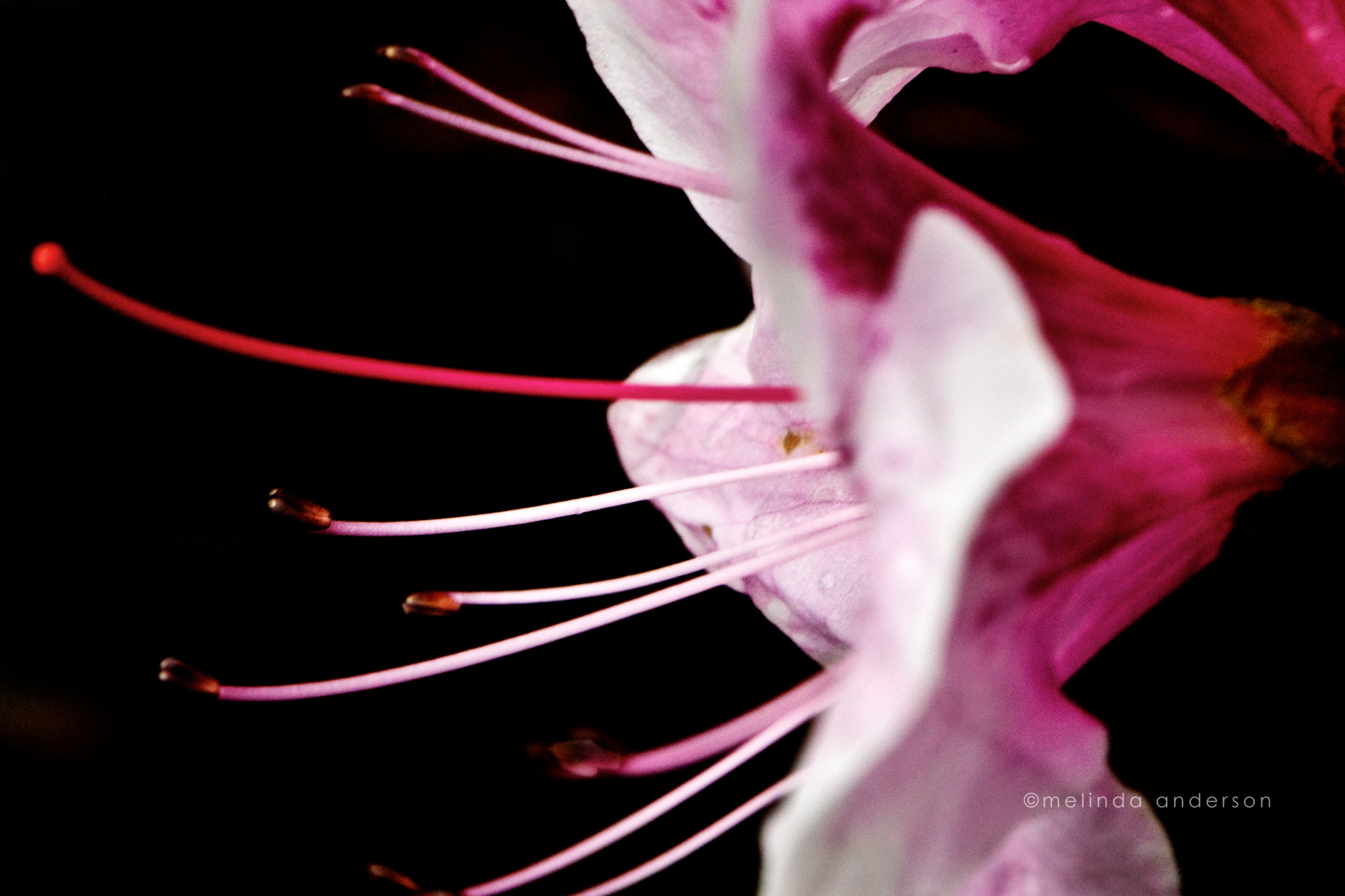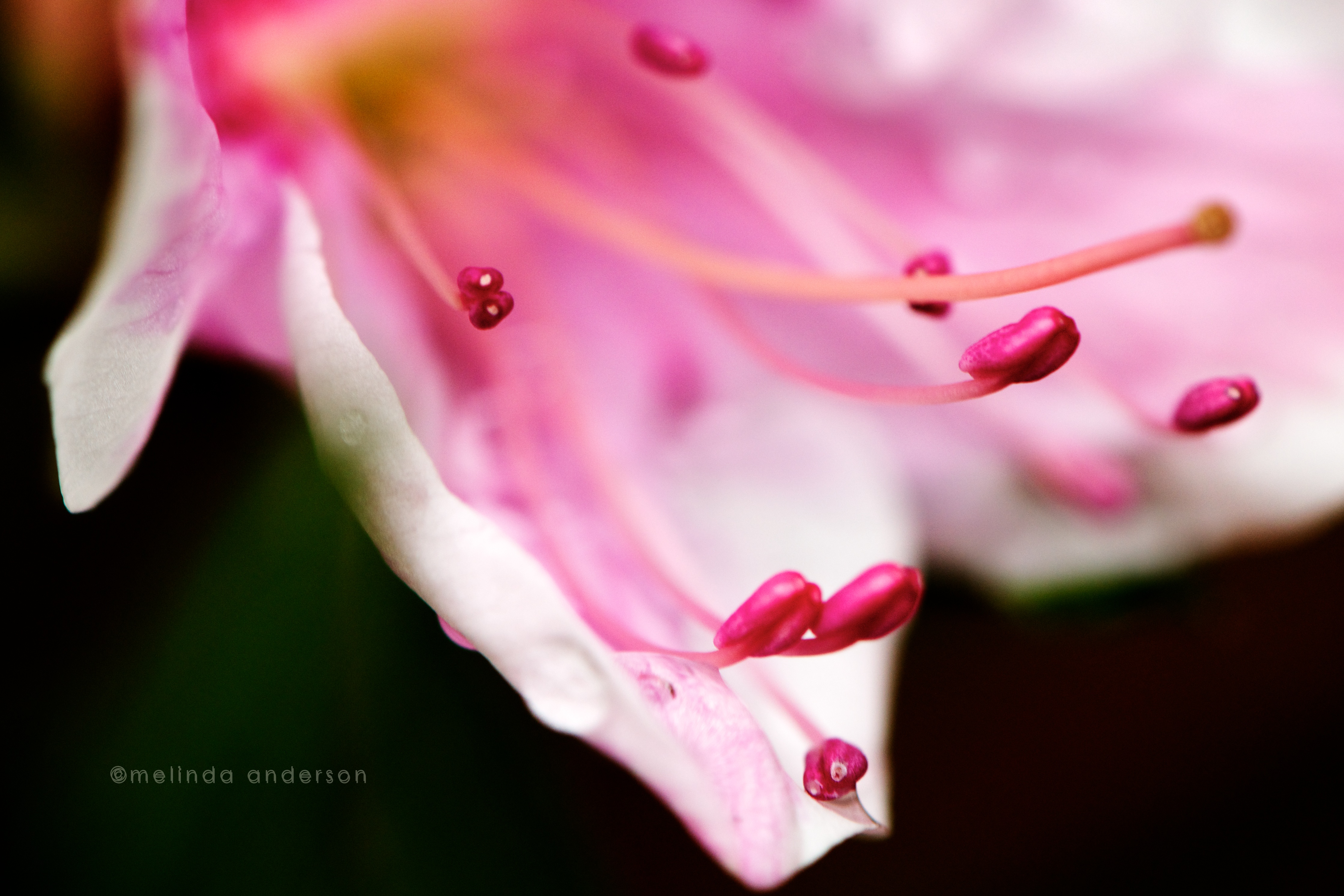 I got distracted by the stamens on my azalea blossoms and ended up focusing on them rather than the water drops.