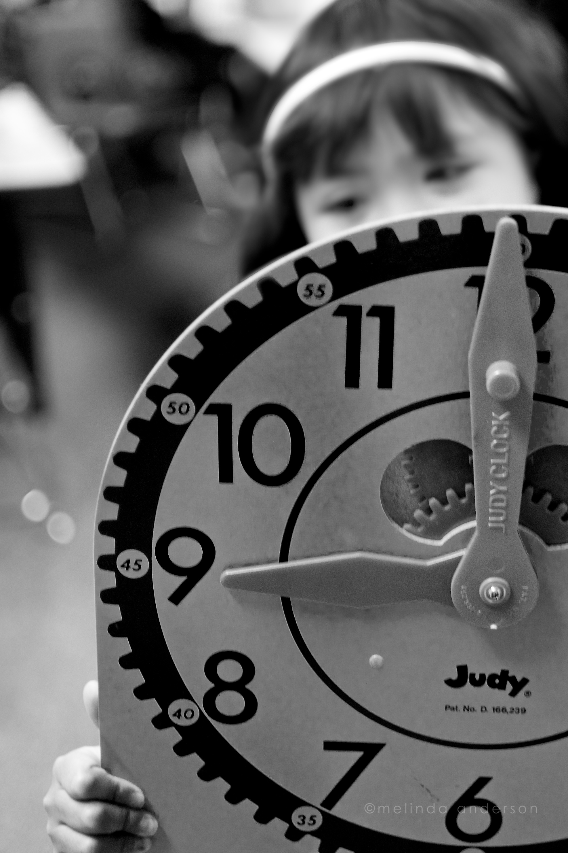 Today’s Flickr group topic was VERY BIG. When I volunteered at school today I snapped this very big teaching clock held by a very little student.