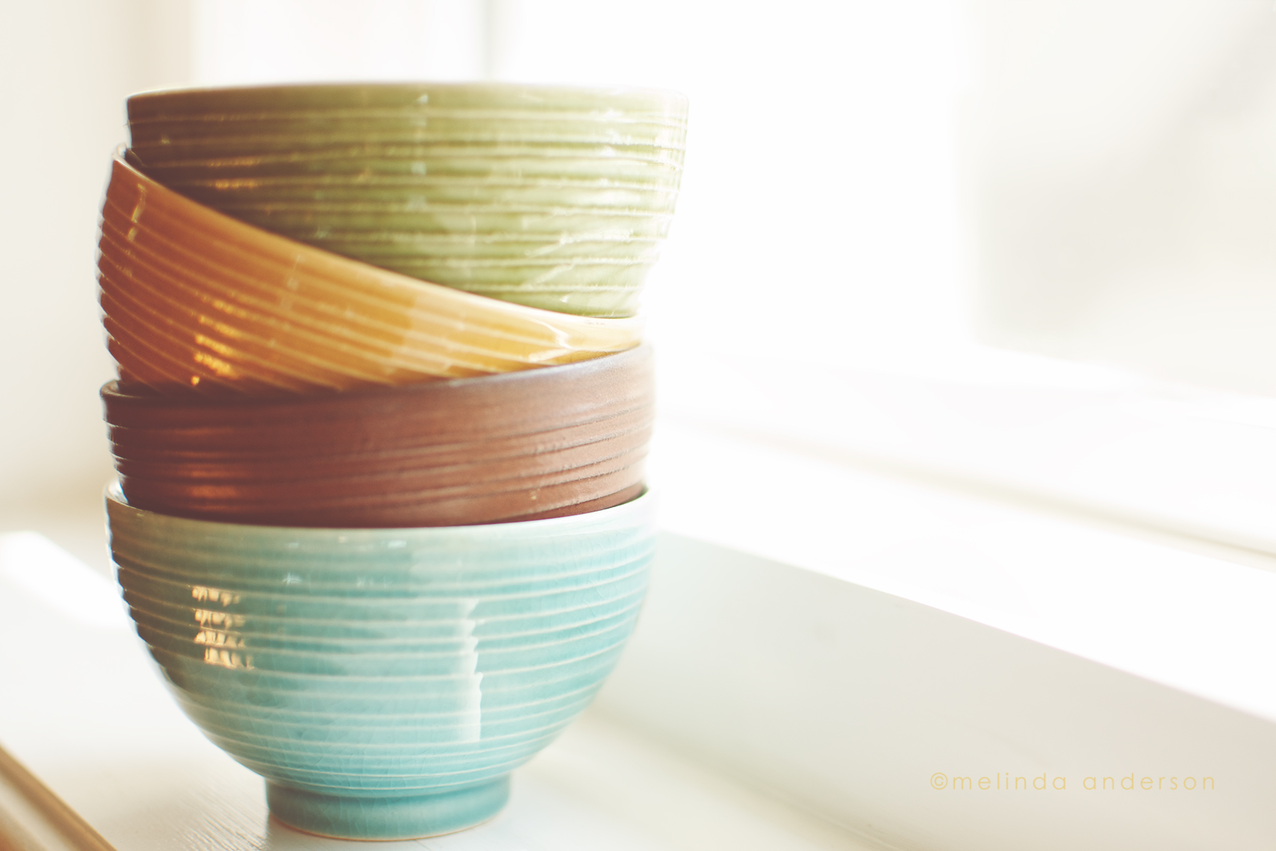 My house is filled with photo ops- books, papers, laundry, boxes, dishes etc. etc. etc. I chose one of my more photogenic stacks- some little Japanese bowls, given to me by a student.