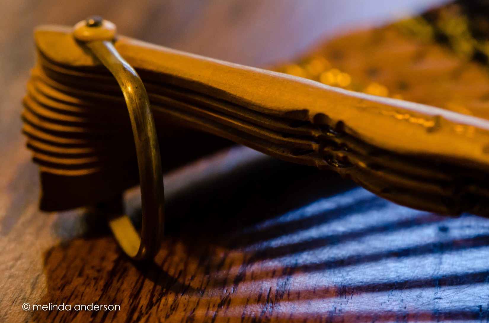 My great-grandmother’s fan is today’s subject, in response to the Flickr topic, fan.  I just couldn’t get excited about what I was seeing through my viewfinder until I saw the light shining through the fan, making a pattern on the table.