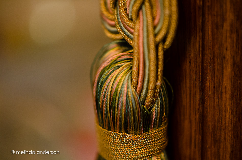 And it IS a beautiful tassel! From Bevilacqua in Venice. I love the macro shots, especially how the bokeh appears on the wrapped cords. Lovely shots, all.