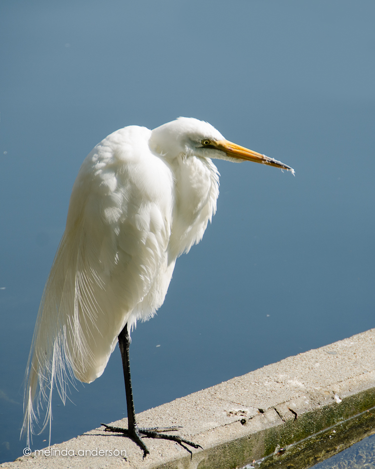 This great white egret was calmly standing by the water near where we parked.