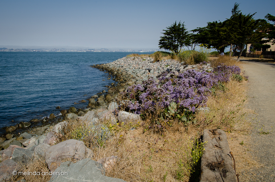looked across the bay at San Francisco.  There was a a big fog bank over the city, so it was difficult to get a clear view.  I played a lot with this photo in Lightroom.  It ended up looking  best in black and white; adding a lot of contrast to it in color caused it to look unrealistic.