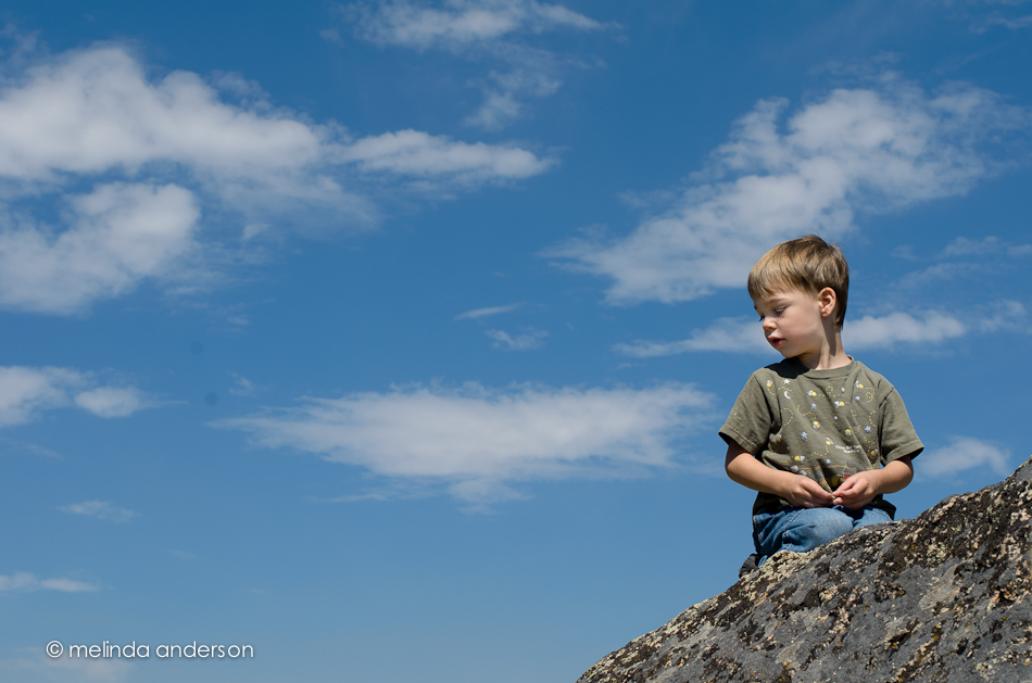 We took a drive this morning to a trailhead where we are thinking of doing a family portrait in September. There were lots of boulders for the boys to climb, which was fun for both of them. The lighting was harsh in late morning, so, if we are going to try for a family portrait session, it should be in late afternoon.
