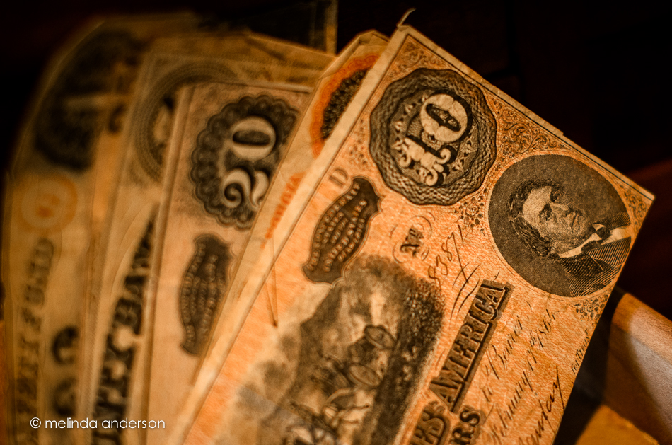 Day 212- Numbers Posted on July 30, 2012July 31, 2012 by Melinda I just returned from Wyoming- and am catching up with some of the topics in my Flickr group. An easy one is numbers, so here is some confederate money that belonged to my great-grandfather. Is this worth anything? Share this: Click to email a link to a friend (Opens in new window) Email Click to share on Facebook (Opens in new window) Facebook Click to share on X (Opens in new window) X Click to share on Pinterest (Opens in new window) Pinterest Related