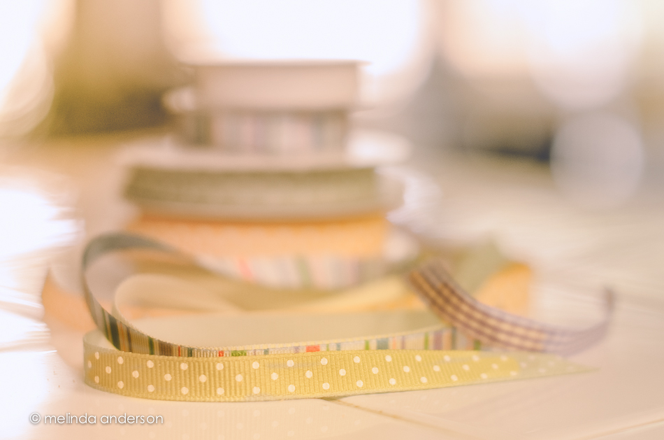 My Flickr group’s theme for today is starts with R. I got out some ribbons left over from a bridal shower I gave for my god-daughter, Andrea, a few years ago and took a few photos. This first one is how I originally envisioned the final image- pastels with a soft focus.