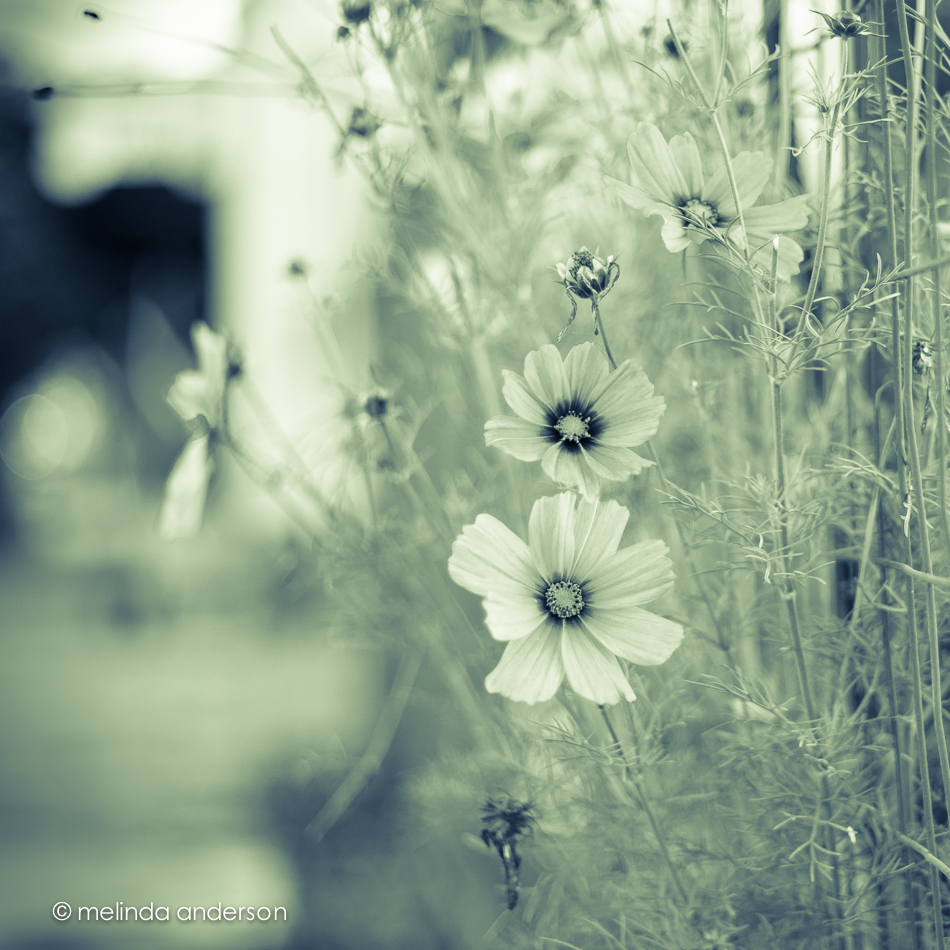 This shot is of some magenta flowers peeking through the fence around the community garden.  Magenta isn’t one of my favorite colors, so I used one of Lightroom’s built-in split-toning presets to make it more to my liking.