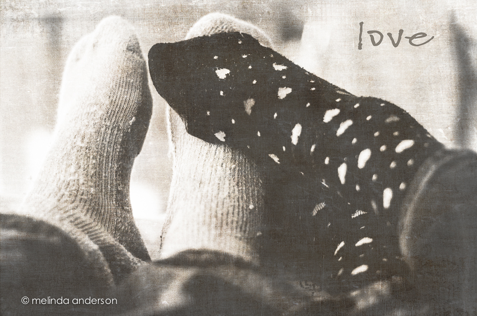 Today’s theme for Texture Tuesday is love.  I conceived this photo originally in response to a Clickin Moms’ creativity challenge, Body Language, and thought it would be perfect for Love as well.  And I got another excuse to wear my favorite valentine socks from my teaching days! 🙂