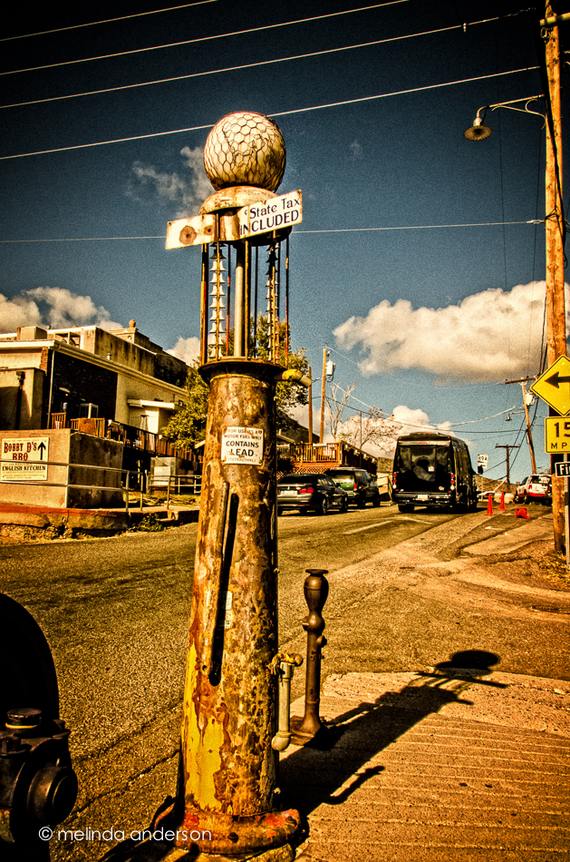 We took Carol to visit the town of Jerome- one of my favorite Arizona “must- sees”. While there we got a call from Susan, our college roommate, and we ended up having a great lunch with her and her husband, Chris at Grapes, a local eatery. Although Carol and I took photos, the emphasis was on visiting and reminiscing about our college days. Along the street, I snapped this photo of an old gas pump, which I edited in Perfect Effects 4 with a pseudo HDR filter.