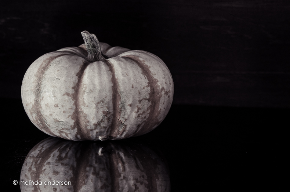 I chose to photograph my mini-pumpkins which I have continued to display after Halloween (along with some gourds). It’s fall! I followed Kim’s instructions exactly (for once!), because I really like the tones and the desaturated effect. Both images use her preset, but only the first has the texture. Unfortunately my photo is so dark that the texture is hard to see. I did use her sharpening technique in the first one also- and you can REALLY see that!
