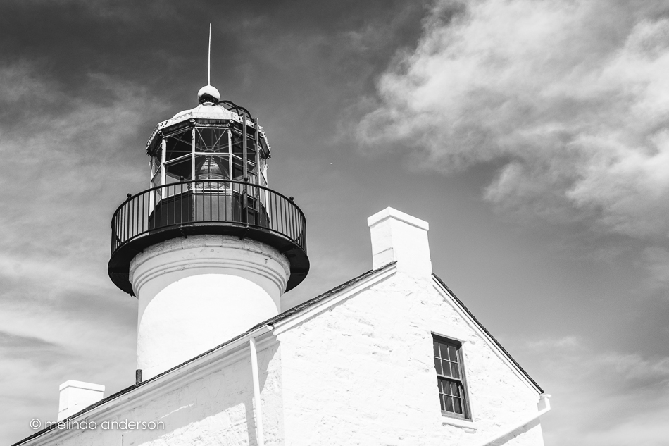 One of the highlights of our trip to San Diego was Point Loma, an area we had never visited before- and we certainly plan to return.  In fact, we visited it twice this trip! There is a spectacular view of San Diego, tidepools, trails, and a view of the ocean that goes on forever. And there are TWO lighthouses- the current one operated by the Coast Guard, and the historic one, built in 1855. The old lighthouse was only operational for 36 years, because its beacon was often obscured by fog. The newer lighthouse sits much closer to the water for better visibility.