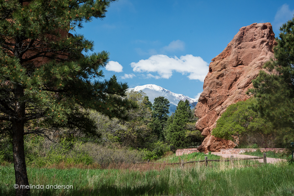After leaving the plains of Kansas, we drove to Colorado, spending the night at Limon. We decided to get up early-ish (early for us, late for landscape photographers) the next morning to drive to Garden of the Gods in Colorado Springs before heading to Santa Fe. We woke up to overcast skies and got to the park around 9:00 or 9:30. Garden of the Gods is a public park with paved walkways among gorgeous red rock formations. It was relatively uncrowded, probably because it appeared that it would rain at any moment. We were both eager to see the iconic view of Pike’s Peak through the red rocks, but of course, you couldn’t see the mountains because of the clouds. I love the combination of gray clouds and red rocks, but I was really hoping to see Pike’s Peak!