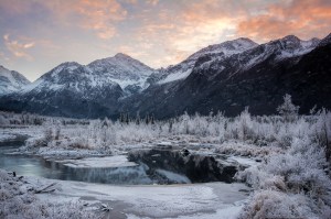 Gorgeous! It looks black and white but the tinge of pink in the sky adds just the perfect amount of color. Brrrr indeed!