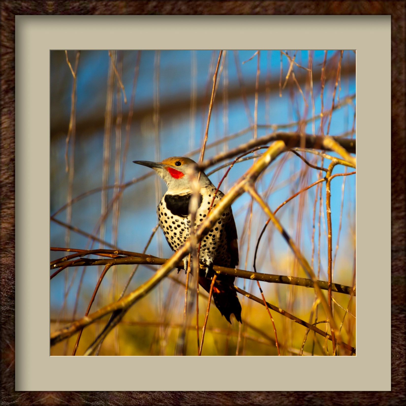 As I was rinsing my cereal bowl one morning last week, I looked out the window and saw this guy! We’ve never spotted any type of woodpecker in our yard, so this was a major event, birdwise. I grabbed my camera and took a photo through the glass. A few minutes later, it flew away. I sent a photo to my bird photographer friend, Carol, and she agreed with my quick identification from Sibley’s- a Northern Flicker. However, there is a possibility it may be a Gilded Flicker- so, not being a birder, I will just say it is a Flicker. Or a big bird.