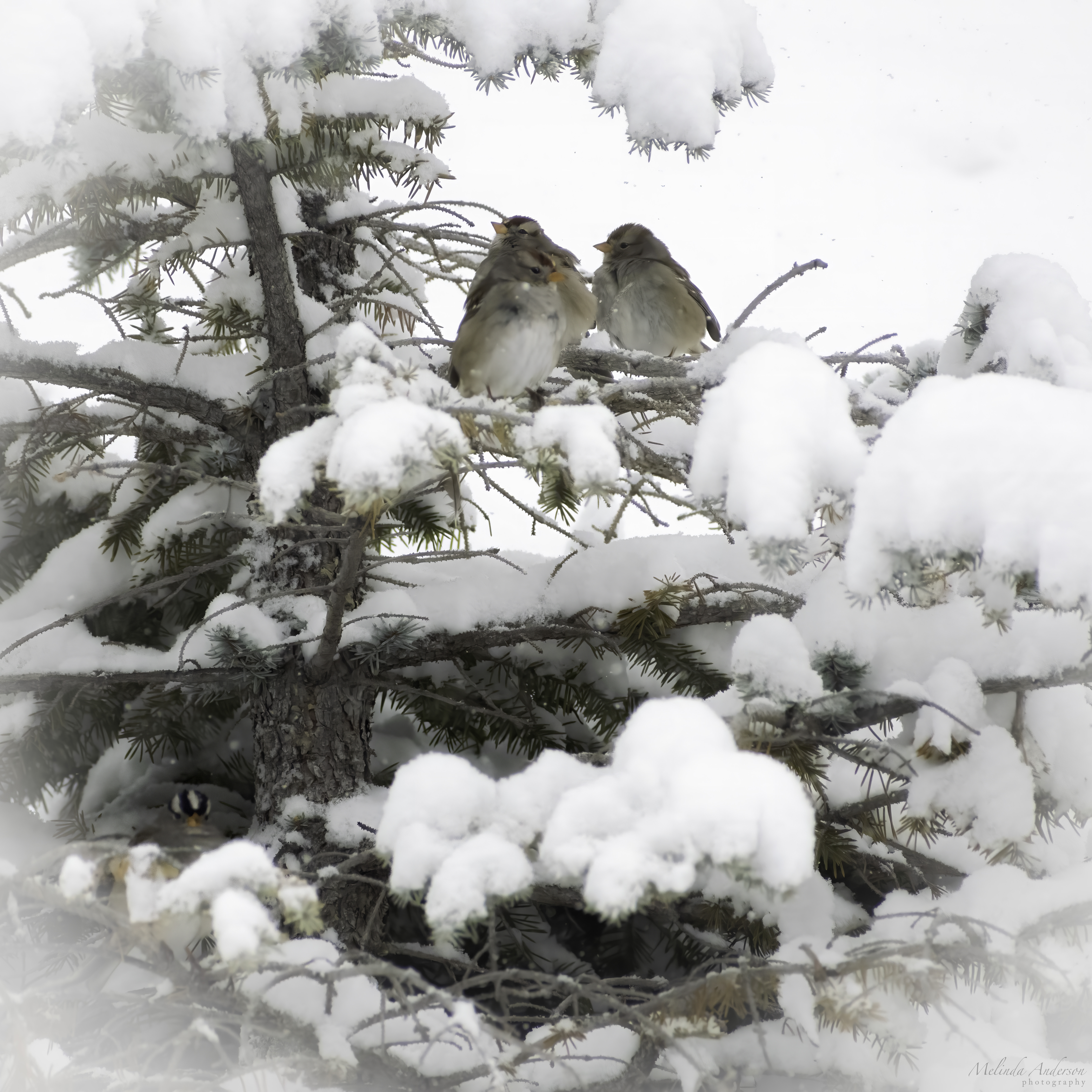 The floofy little sparrows took shelter among the snow covered branches last week as the snow continued to come down last week. And now the snow has melted, and I’m thinking spring is just around the corner!