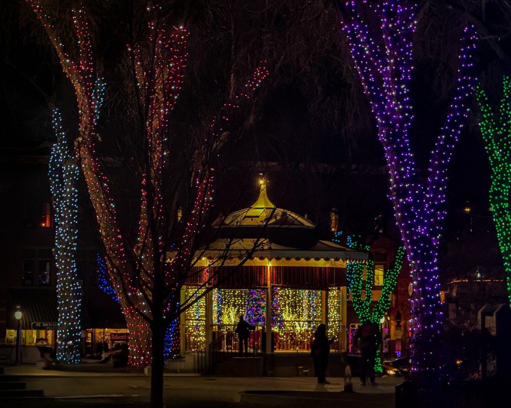 It was soooo cold (with no snow), but that did not stop people from walking around Courthouse Square looking at the decorations. The trees and gazebo were all lit up creating a magical atmosphere for walking on this December night.