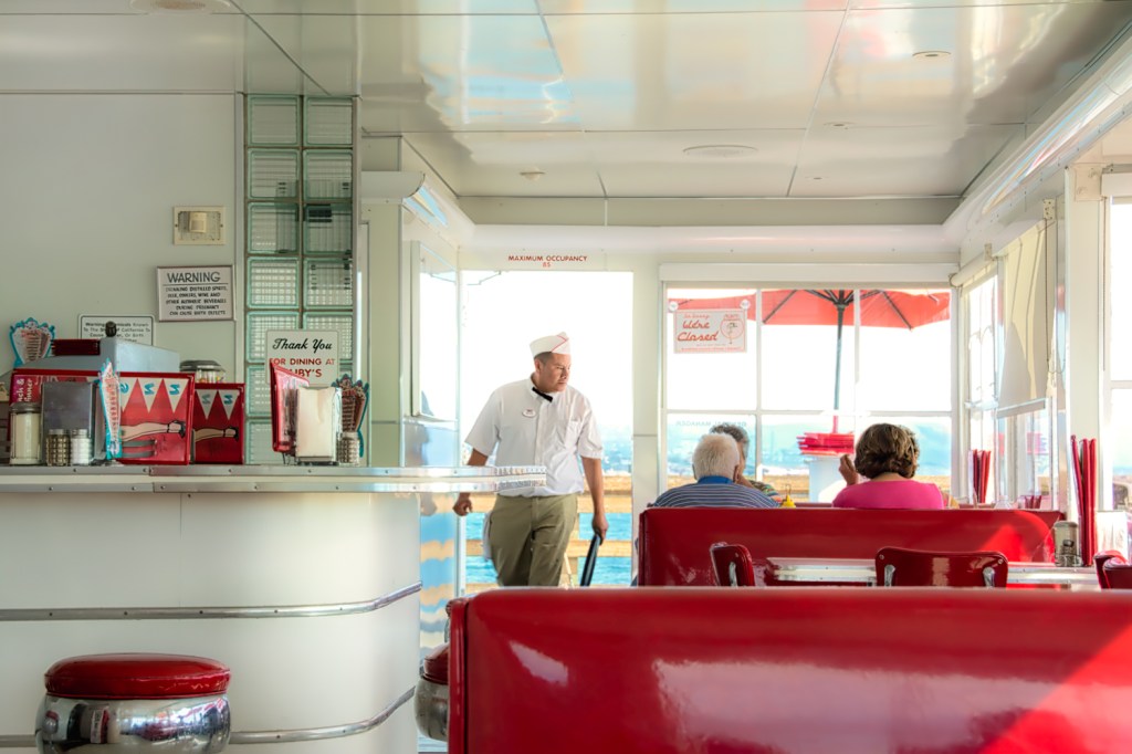 I took this photo several years ago at a Ruby’s in Southern California. The light was right, and I tried to capture the waiter as he went about his duties. I went back and edited it a bit, had it printed, and took it to my camera club’s Christmas party. There’s something about photos I take at the beaches that end up being among my favorites- I need to get back there!