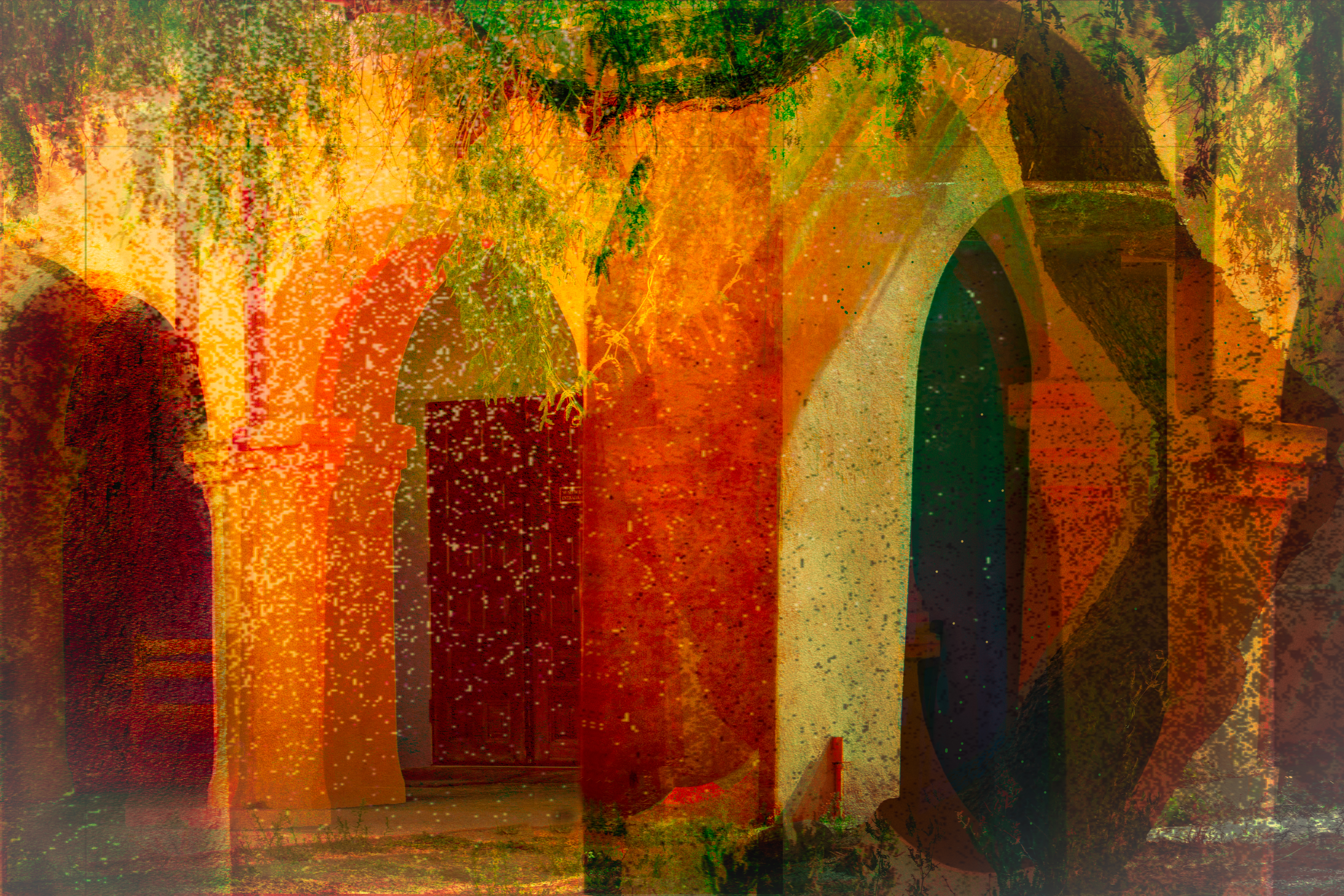 Above is part of my venture into abstract photography- multiple exposures and often layering the resulting images in Photoshop to create an impression of place, feeling or memory. The Tumacacori Mission in southern Arizona is one of my favorite places we have visited since living here. The old buildings, the history of the O’odham people who still live in the area, the cemetery with its rocks and simple crosses all make a strong impact on visitors. It is my fourth grade history lessons brought to life! Beyond that is the deeper understanding of colonialism and its impact everywhere.