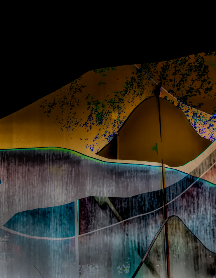 On the last day he was in the hospital, I brought my camera with me and photographed parts of an art installation across from the main entrance. Since I first saw it, I had been captivated by this piece of art, which forms a semi-wall in front of the parking area. I decided to practice my multiple exposure skills in photographing it, because I didn’t want to just capture someone else’s art- I wanted to create my own.