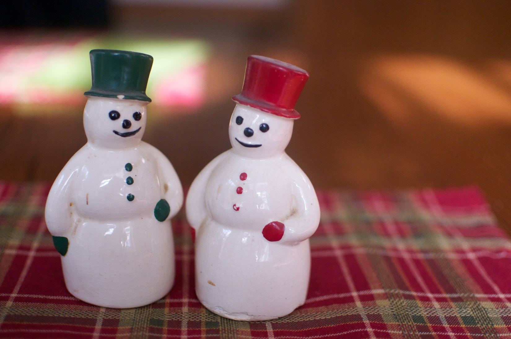 Just so you know… on the days that I don’t go anywhere, have no grandchildren to photograph… this is just about as exciting as my photos will get. That will be part of the challenge- finding SOMETHING in the house to shoot, so to speak. These are heirloom snowmen salt and pepper shakers, mind you- they were in my house as a little girl, and I can’t remember a Christmas without them.