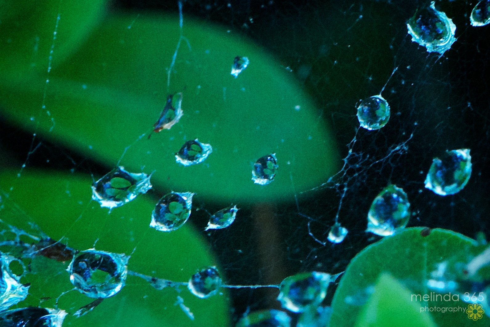 Water drops trapped in a spider web- perfect photo op! I actually tried this yesterday, but wasn’t happy with my results, so I tried again today. I tried different exposure settings and liked how it looked best when slightly underexposed. This is a crop of a larger image.