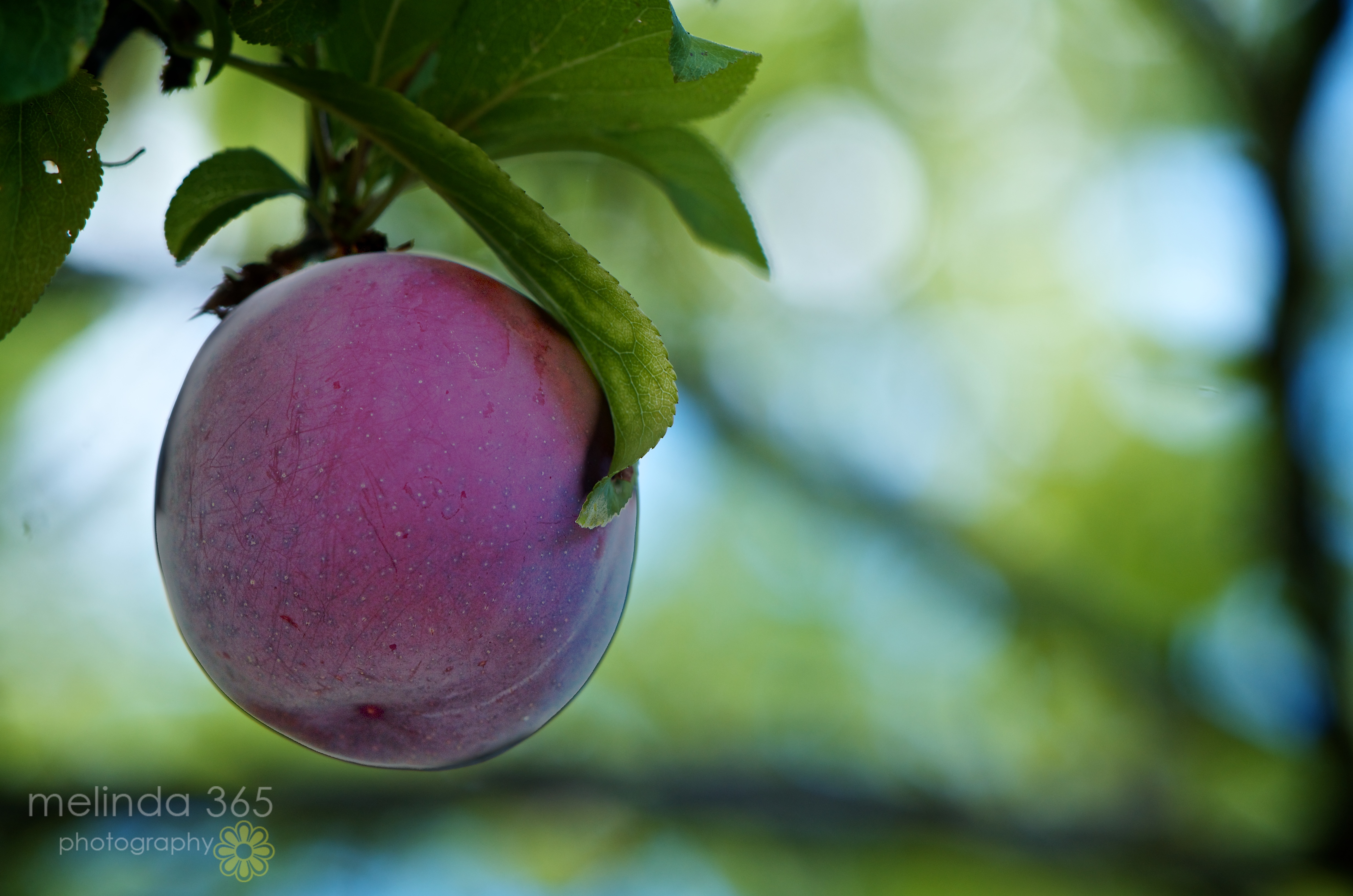 The hanging plum reminds me of a Christmas ornament!