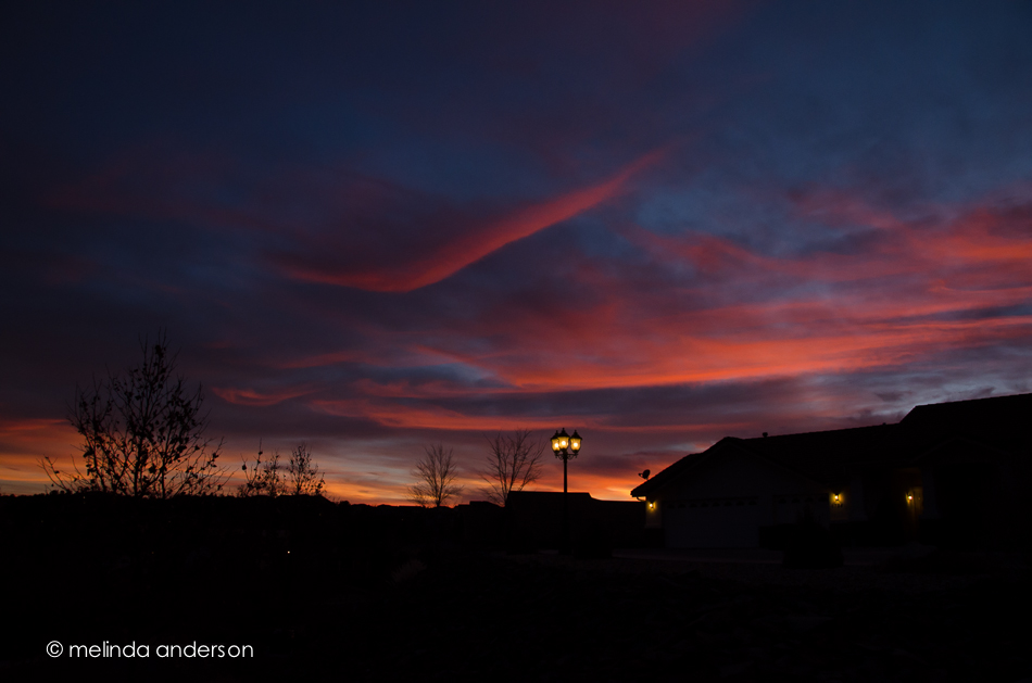 Here’s our house at sunset (yes, I took more house photos. . .). Look at those clouds!