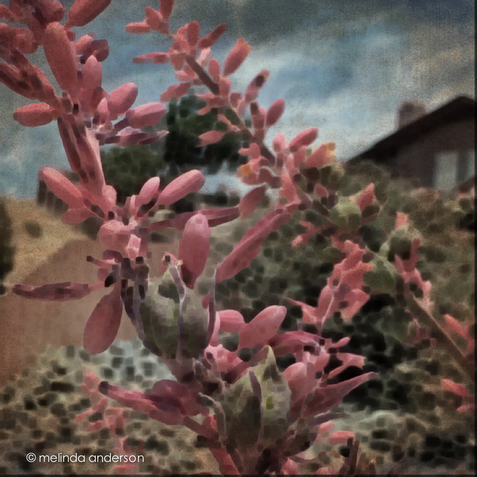 The photo below was taken in our front yard and is a closeup of the flowers (and fruit?) of a spiky foundation planting in our flower bed. Now that it’s blooming, I notice this plant everywhere we go in Arizona. Last fall I cut off many of the dried stalks and put them in my old milk can on the front porch. You can see what they look like dried here. I edited the photo in Photo Wizard, which is a great app for basic editing (it even has a curves adjustment!), as well as having a zillion special filters and effects, from textures and vignettes to motion blur and a bathroom glass filter. I have yet to explore it fully- guess I need to go on another road trip!